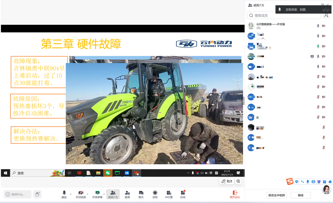 2025年11月1日,昆明云内动力智能装备有限公司协同昆明云内动力股份有限公司服务管理部,与盈峰环境科技集团股份有限公司,成功举办了一场非道路T4发动机售后服务线上交流会。本次交流会由云内动力培训教师陶雪芝主讲,三方围绕盈峰环境清扫车在蒙古、土库曼斯坦及东南亚等海外市场的服务需求,进行了深入的技术研讨与经验共享。