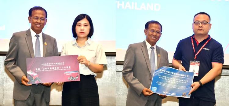 The ceremony marked a significant contribution to CSAM’s Pilot Project on Agricultural Mechanization for Sustainable Reduction of Rice Straw and Sugarcane Trash Burning in Ratchaburi Province, Thailand. The donated machinery will empower local farmers with advanced, eco-friendly solutions to reduce open-field burning — a critical step toward sustainable agriculture and cleaner air in Thailand. Two Chinese agricultural machinery manufacturers stepped forward to support the initiative. Shandong UNIA Agricultural Machinery Co., Ltd. donated a fertilizer spreader and a round baler, which will enhance efficient straw management and nutrient distribution. Kunming Yunnei Power Intelligent Equipment Co., Ltd. provided two mini tillers, supporting small-scale farmers in adopting mechanized practices.